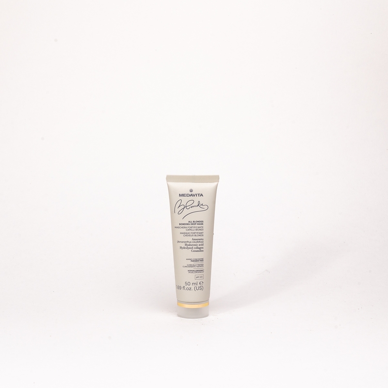 Маска для всіх відтінків білявого волосся, що глибоко відновлює структурні зв'язки (pH 3.5) захищає та зберігає всі відтінки блонду, реструктуризує та відновлює волосся, робить його сильним та щільним. Спеціалісти MEDAVITA використали найкращі косметологічні інновації по догляду за шкірою обличчя та втілили їх в ексклюзивних формулах BLONDIE для максимальної турботи про чутливе знебарвлене волосся. Ідеально підходить для середньої або товстої, жорсткої текстури волосся. Має неперевершений аромат. Для професійного та домашнього догляду.