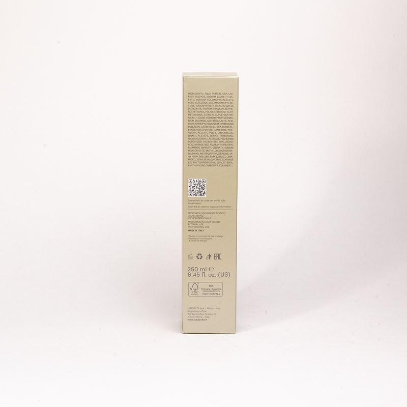 aqua (wa- ter), mea-laureth sulfate, sodium laureth sulfate, cocamidopropyl betaine, coco-glucoside, sodium cocoamphoacetate, sodium myreth sulfate, glycol distearate, glycerin, parfum (fragrance), phenoxyethanol, polyquaternium-10, dimethiconol, polyquaternium-7, citric acid, guar hydroxypropyltrimonium chloride, lactic acid, hydroxypropyltrimonium hydrolyzed collagen, laureth-23, tea-dodecylbenzenesulfonate, peg- 8, citronellol, serine, threonine, hy- drolyzed hyaluronic acid, peg-8/smdi copolymer, sodium lauroyl lactyla- te, hydrolyzed amaranth protein, palmitoyl myristyl serinate, sodium polyacrylate, methylchloroisothia- zolinone, methylisothiazolinone, sa- lix nigra (willow) bark extract, cera- mide 3, ethylhexylglycerin, ceramide 6 ii, cholesterol, phytosphingosine, carbomer, xanthan gum, ceramide 1.