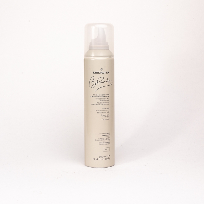 Мус-кондиціонер для підсилення холодних відтінків блонду (pH 7)має подвійну дію — кондиціонує волосся та підсилює його колір. Містить пігменти, які підкреслюють попелясті та ірисові відтінки холодного блонду. Його унікальна формула зволожує та ущільнює волосся, збільшуючи життєздатність і силу волосся, дбайливо огортає його і створює захисну мантію. Містить UVA/UVB-фільтри, що захищають волосся від окислення та впливу сонячних променів. Полегшує розчісування, має легку текстуру, що не обтяжує волосся. На середньому і густому волоссі рекомендується використовувати, не змиваючи. Дозволяє створювати швидкий сервіс в салоні для корекції кольору та тонування. Можна використовувати самостійно або змішувати з прямими пігментами MEDAVITA. Підходить для професійного та домашнього догляду.