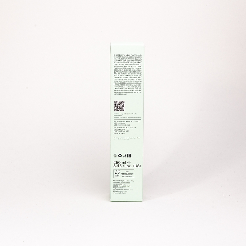 олія насіння чорниці захищає, реструктурує, відновлює, зменшує пористість та ламкості волосся. олія сача інчі природний антиоксидант, живить, регенерує, захищає, додає блиску й запобігає зневодненню. олія чорного кмину утримує вологу, зміцнює, реконструює, додає глянсового ефекту. олія морінги має антиоксиданту дію, захищає волосся від вільних радикалів, смогу та сонячних променів, додає сили та блиску, живить, запобігає зневодненню. лляна олія має захисну дію, додає блиску, живить, запобігає зневодненню. пантенол зволожувальний, зміцнювальний, заспокійливий, кондиціонувальний засіб. amino concentré фірмовий комплекс для зміцнення волосся від medavita. чисті амінокислоти серин, карбоцистеїн і треонін реструктуризують волосся, заповнюючи пустоти в кутикулі. вони відновлюють структуру волосяних волокон, герметизують лусочки кутикули, залишаючи волосся гладким, блискучим і живим.
