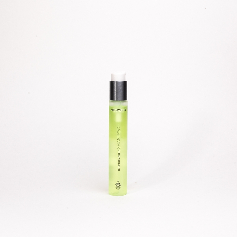 NEWSHA Deep Cleansing глибоко очищує волосся та шкіру голови від себуму, залишків стайлінгу, солей і силіконів. Екстракт виноградних кісточок активізує кровообіг і зміцнює волосся.
