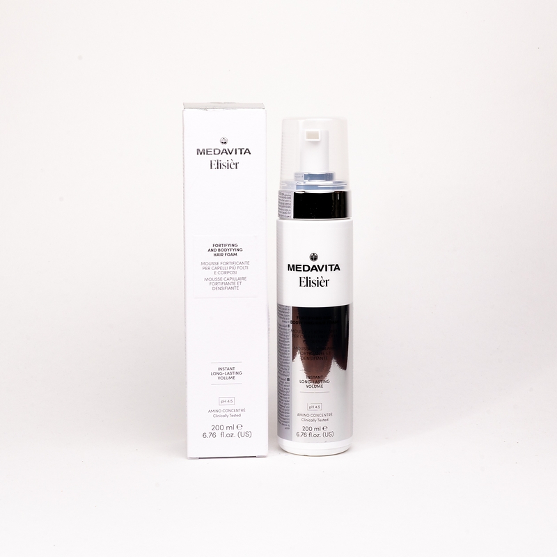Піна для ущільнення та укріплення волосся ELISIÈR зміцнює волосся, надає об'єму від коренів до кінчиків, додає пружності. Не обтяжує, створює невагомий фінішний ефект. Унікальний продукт, що дбає про волосся, але одночасно дає ефект стайлінгу. Найкраще працює у синергії зі Зміцнювальною та відновлювальною сироваткою для шкіри голови та волосся ELISIÈR