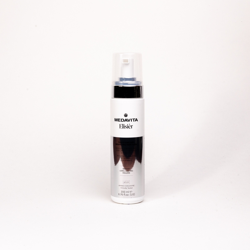 Піна ELISIÈR для ущільнення та укріплення волосся надає об'єм від коренів до кінчиків і додає пружності. Легка формула не обтяжує волосся і зберігає форму укладки протягом усього дня.