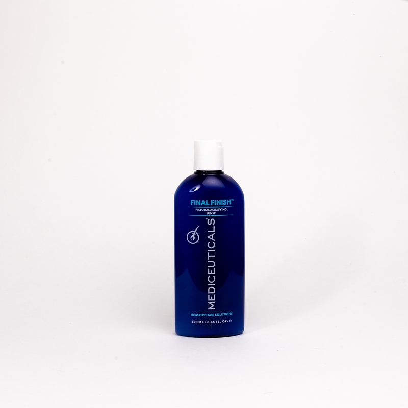 ретельно помийте голову відповідним шампунем mediceuticals®. нанесіть кондиціонер final finish™ на підсушене рушником волосся, залиште на 2-3 хвилини, після ретельно змийте водою