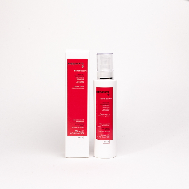 Крем-гель для надання об’єму (pH 5.5) додає пружності та об’єму, не обтяжує волосся, утворює тонку дихаючу захисну мантію, додає блиску. Волосся виглядає густішим, енергійнішим та більш об’ємним. Підходить для професійного та домашнього використання.