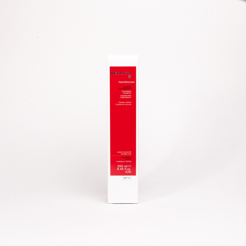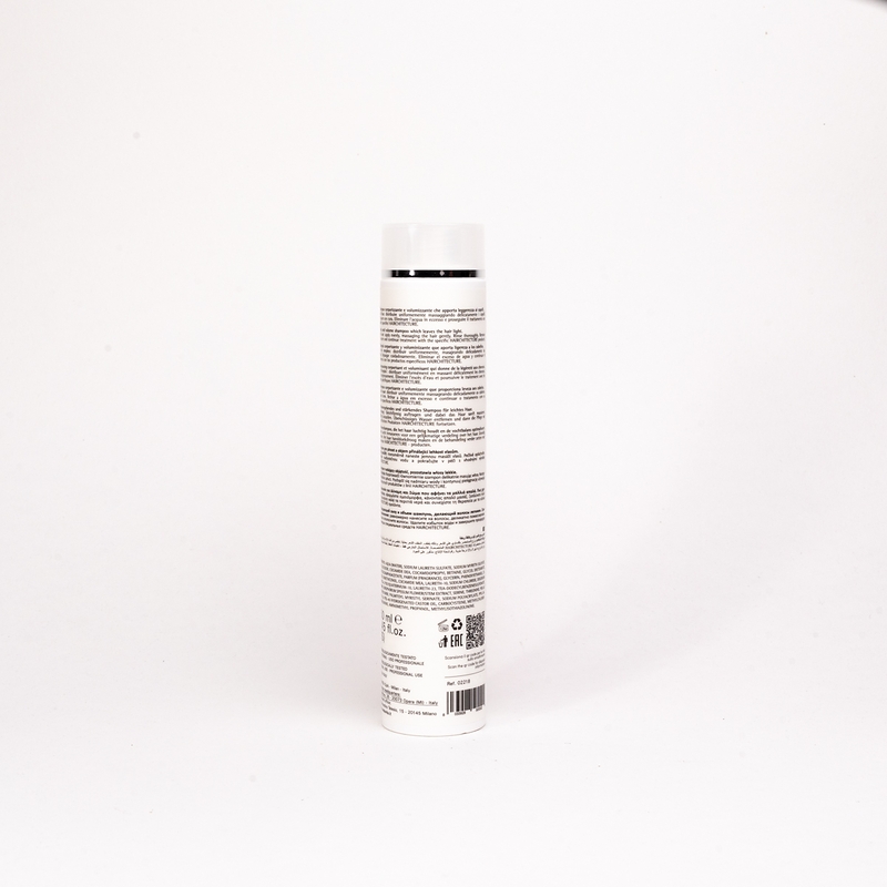 Шампунь для об’єму та ущільнення волосся (pH 5.5) делікатно очищає тонке волосся та забезпечує оптимальний рівень зволоження від коренів до кінчиків. Надає сяйва та захисту, забезпечує зволоження, об'єм і щільність. Не обтяжує. Створений для професійного та домашнього використання як частина програми для створення об’єму HAIRCHITECTURE.