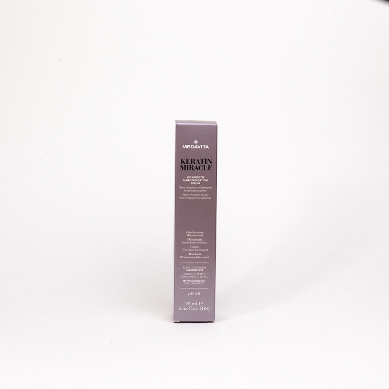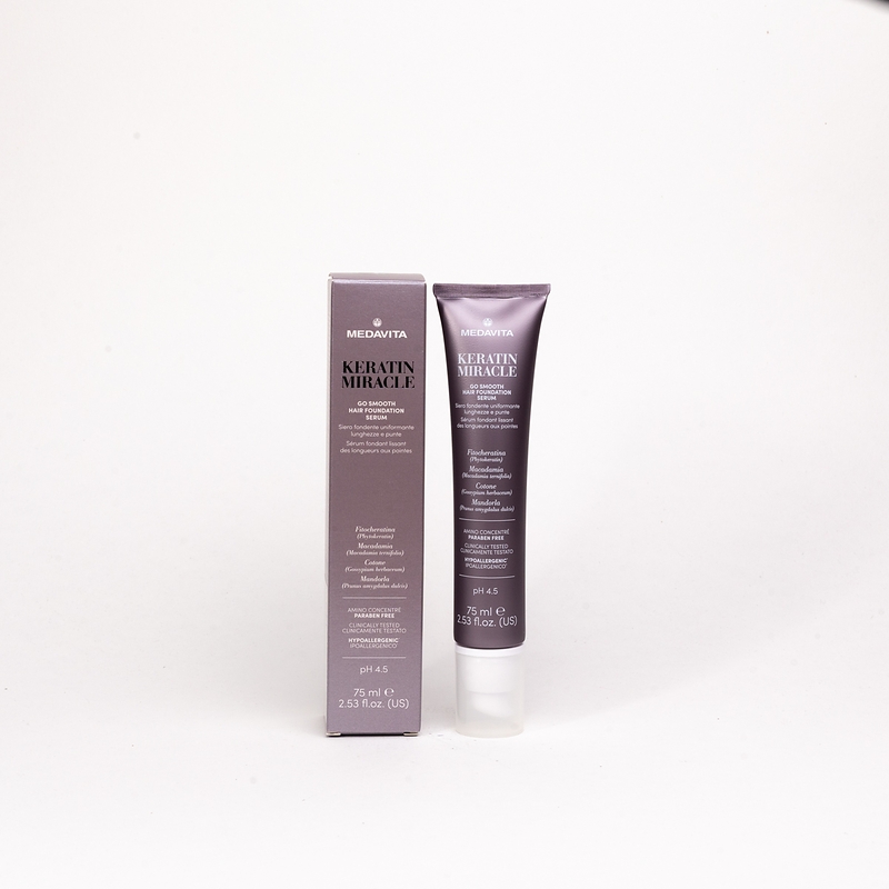 Сироватка-макіяж, що тане для довжини й кінчиків (pH 4.5) — незмивна сироватка для захисту довжини та кінчиків волосся під час і після сушіння. Розгладжує кератинові лусочки, герметизує кутикулу. Робить волосся легким і шовковистим. Надає діамантового блиску. Ідеальна для середнього та густого волосся. Підходить для домашнього використання та підтримання результату професійної процедури розгладження волосся Keratin Miracle, а також для догляду та дисципліни неслухняного пухнастого волосся. Сироватка-макіяж розгладжує кератинові лусочки, робить волосся легким, шовковистим, осяйним.