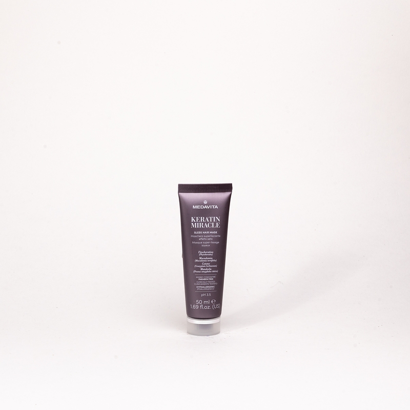 Ультрарозгладжувальна маска з ефектом шовку (pH 3,5), що пом’якшує волокна волосся. Формула, що допомагає волоссю утримувати вологу, робить його неймовірно шовковистим та покриває захисною мантією. Одночасно захищає від втрати вологи та перешкоджає сухості. Волосся глибоко зволожене, неймовірно блискуче, гладке, легко піддається укладанню. Ідеально підходить для домашнього використання та підтримання результату професійної процедури розгладження волосся Keratin Miracle, а також для догляду за неслухняним пухнастим волоссям.