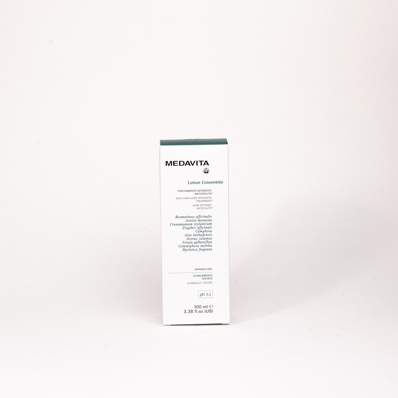 Інтенсивний лосьйон проти випадання волосся Lotion concentrée (pH 3.5) — потужний ад'ювант для боротьби з випаданням волосся. Складається з ретельно дібраних інгредієнтів рослинного походження, що мають потужні вазоактивні та антиоксидантні властивості. Насичує киснем та покращує мікроциркуляцію шкіри голови, пригнічує ферменти, відповідальні за функціональні зміни, що викликають втрату волосся. Сприяє росту волосся, зміцнює систему кріплення волосяних фолікулів і подовжує життєвий цикл волосся. Для професійного використання та домашнього догляду. Як діє Lotion concentrée: Протидіє збільшенню вільних радикалів Протидіє надмірному виробленню себуму Заспокоює шкіру голови Покращує мікроциркуляцію шкіри голови Живить і зміцнює волосяні фолікули Зміцнює кріплення волосся Протидіє стоншенню волосся Збільшує діаметр стрижнів волосся