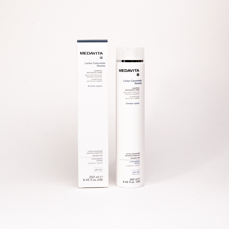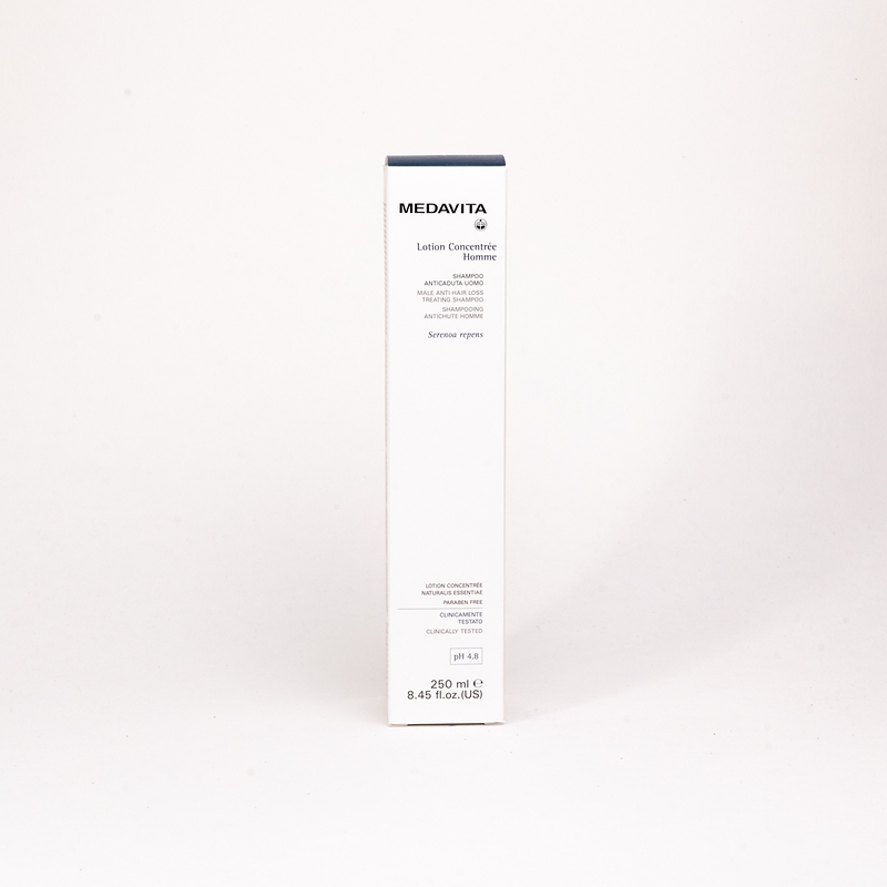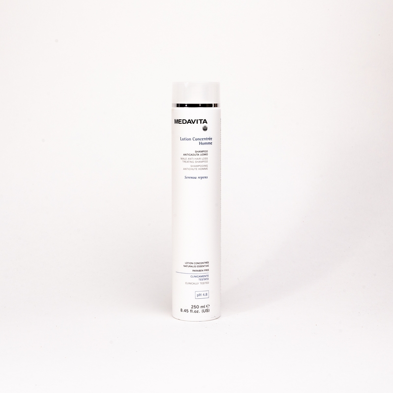 Зміцнювальний шампунь проти випадання волосся у чоловіків Lotion concentrée HOMME (pH 4.8). Запобігає ослабленню та подальшому випаданню волосся при схильності до андрогенетичної алопеції. Підходить для щоденного використання. Забезпечує тривалу чистоту та відчуття свіжості. Допомагає зміцнити систему кріплення волосяних фолікулів, забезпечуючи їм ідеальну трофіку на життєво важливому етапі росту. Створює надтонку захисну мантію, що повністю складається з натуральних компонентів. Зміцнює волосся, посилює його витривалість і зменшує випадання волосся під час розчісування. Робить його м'яким, блискучим і слухняним. Для професійного використання та домашнього догляду. Рекомендовано використовувати у таких випадках: для атонічної шкіри голови; за повільного капілярного кровообігу; для профілактики випадання волосся генетичної та гормональної природи; як частина курсу лікування андрогенетичної алопеції.