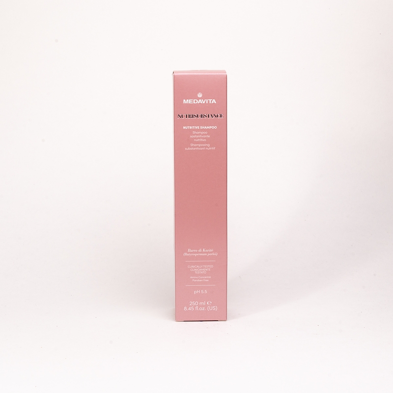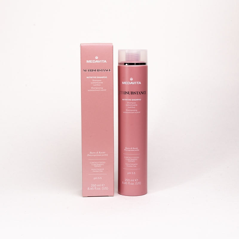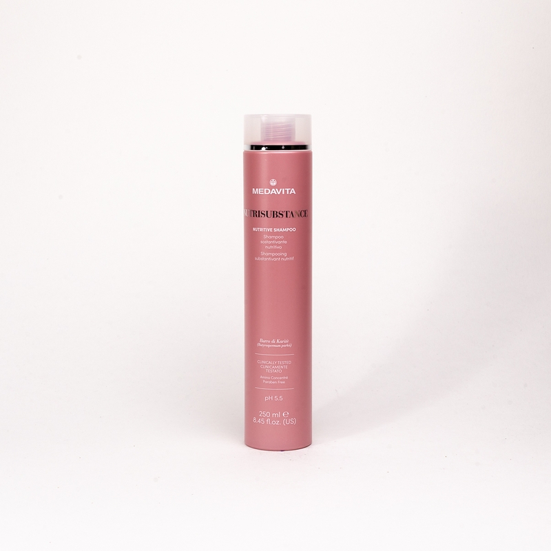 Шампунь живильний для сухого волосся (pH 5.5). Зміцнює волокна волосся, має високу концентрацію активних інгредієнтів, які забезпечують зволоження та насичення поживними речовинами навіть під час очищення. Глибоко живить і пом'якшує структуру волосся, огортає довжину та кінчики, робить волосся шовковистим, блискучим та слухняним.
