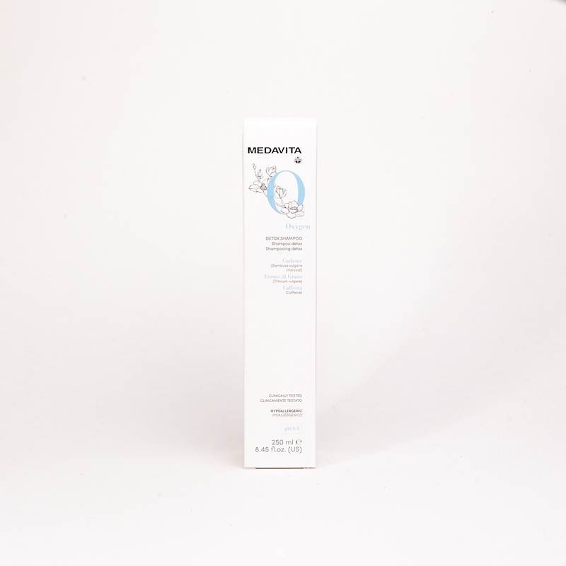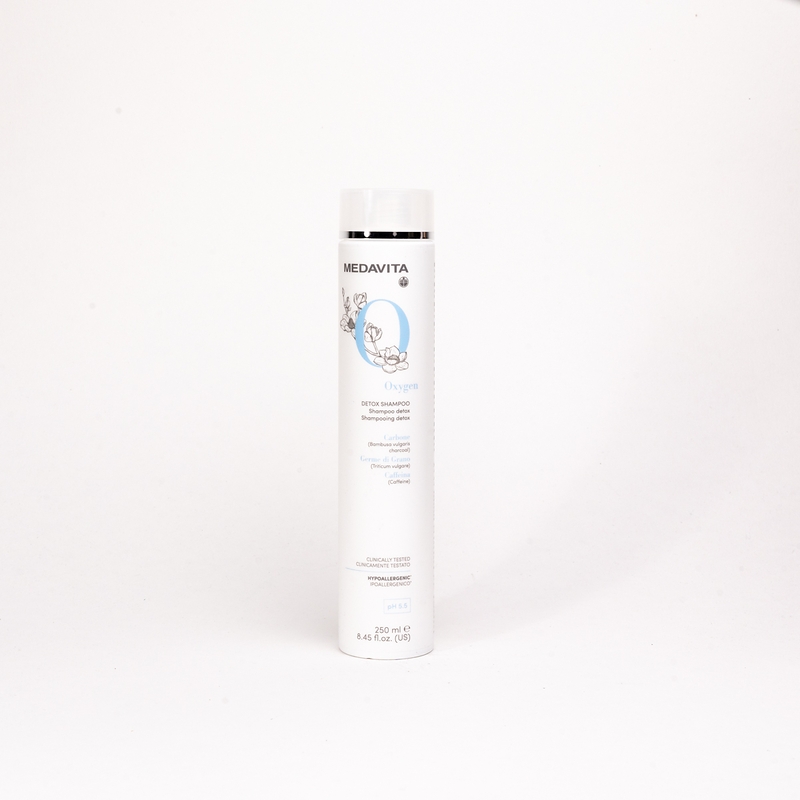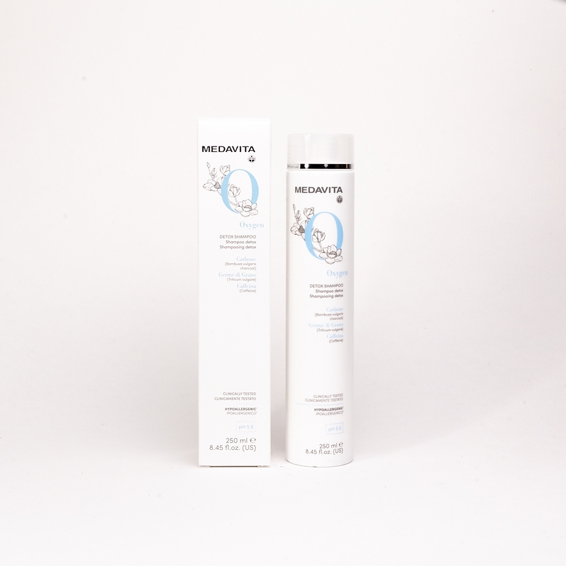 Шампунь-детокс з активним киснем (pH 5.5) — делікатно, але ефективно очищає волосся на шкіру голови від шкірного сала й токсинів, відновлює життєву силу й енергію. Регулює виділення себума, дбає про оптимальний баланс шкіри голови. Шампунь — це другий крок ритуалу детоксу OXYGEN. Процедуру можна виконувати в салоні або вдома.