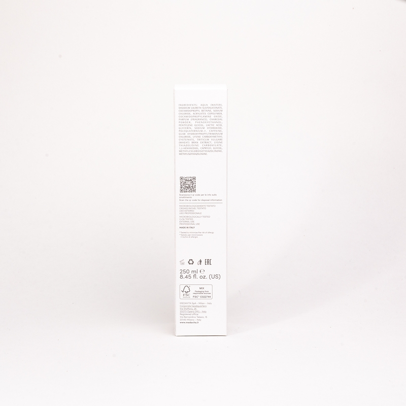 бамбукове вугілля допомагає очистити пори шкіри від хімікатів, відлущити відмерлі клітини шкіри і стимулює ріст нових клітин. робить шкіру та волосся пружними та гладенькими. ефективний засіб проти подразнення, очищує та регулює вологість. молочна кислота відновлює, зволожує. гліцерин зволожує, пом’якшує, насичує, робить волосся шовковистим. кофеїн потужно стимулює, підвищуючи активність обміну речовин. живить, покращує оксигенацію і тонізує шкіру голови. дренує, допомагає зменшити затримку води, виводить застійні рідини з організму. сприяє усуненню мертвих клітин, має кератолітичну дію. покращує зовнішній вигляд шкіри та волосся. лізин карбоксиметил цистеїнат, лізин тіазолідин карбоксилат комплекс амінокислот сірки, що нормалізує роботу сальних залоз. зародки пшениці сприяють відновленню пошкодженого волосся завдяки своїй дії проти ламкості, покращують зовнішній вигляд і цілісність волосся. дисодіум лаурет сульфосукцинат, кокамідопропіл бетаїн, кокамідопропіламін оксид поверхнево-активні речовини надзвичайно дбайливо піклуються про шкіру, очі та слизові оболонки.