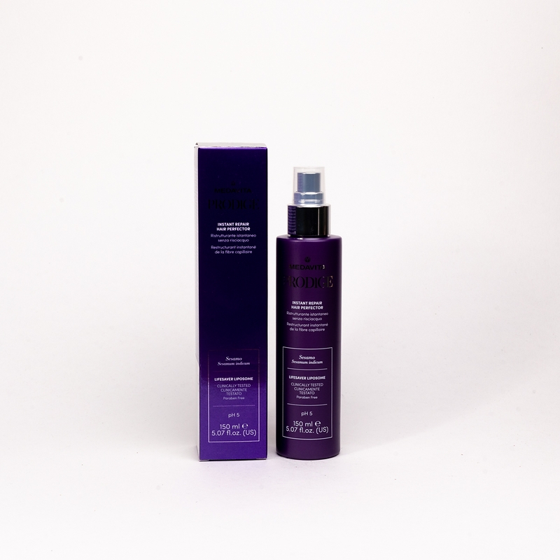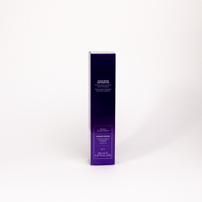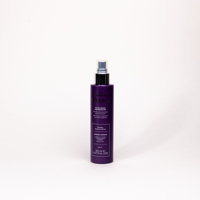Флюїд для бездоганної миттєвої реконструкції волосся (pH 5) — закріплює дію попередніх кроків процедури домашнього догляду для відродження волосся PRODIGE. Реструктуризує волосся, ущільнює його кутикулу, кондиціонує, живить, додає міцності та захищає від розламування. Запобігає появі посічених кінчиків та додає блиску. Рекомендується для використання в домашньому догляді після салонної процедури відновлення волосся PRODIGE для збереження та посилення результатів реконструкції та відновлення пошкодженого волосся.