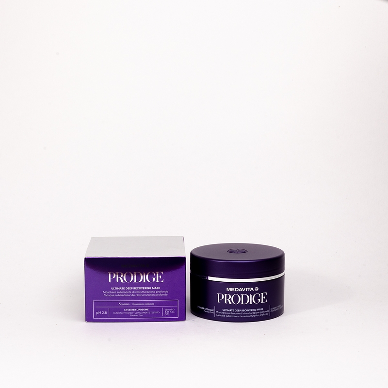 Маска «Абсолютне відродження» для дуже пошкодженого волосся (pH 2.8) запечатує кутикулу, закріплює активні інгредієнти сироватки миттевої дії для реконструкції PRODIGE на волокнах волосся, живить білкову структуру. Миттєво відновлює структуру волосся, ущільнює кутикулу, робить волосся м’яким і шовковистим. Запобігає появі посічених кінчиків. Надає блиску. Рекомендується для використання в домашньому догляді після салонної процедури відновлення волосся PRODIGE для збереження та посилення результатів реконструкції та відновлення пошкодженого волосся.