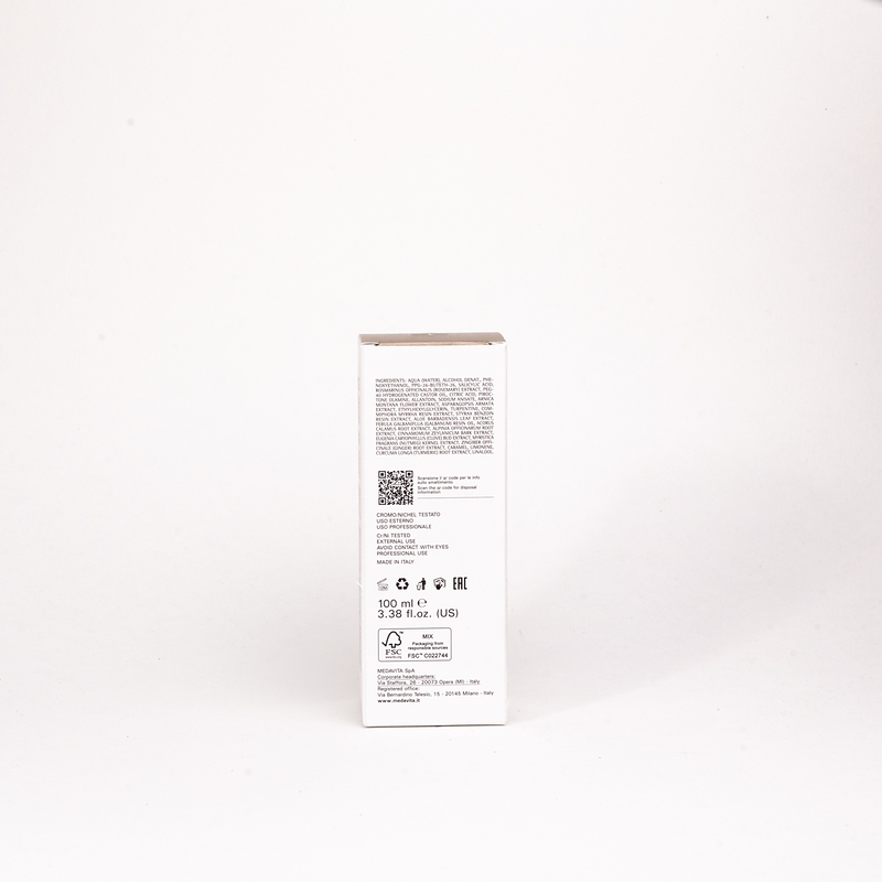 aqua (water), alcohol denat., phenoxyethanol, ppg-26-buteth-26, salicylic acid, rosmarinus officinalis (rosemary) extract, peg-40 hydrogenated castor oil, citric acid, piroctone olamine, allantoin, sodium anisate, caramel, arnica montana flower extract, asparagopsis armata extract, ethylhexylglycerin, turpentine, aloe ferox leaf juice, commiphora myrrha resin extract, styrax benzoin resin extract, ferula galbaniflua (galbanum) resin oil, acorus calamus root extract, alpinia officinarum root extract, cinnamomum zeylanicum bark extract, curcuma zedoaria root extract, eugenia caryophyllus (clove) bud extract, myristica fragrans (nutmeg) kernel extract, zingiber officinale (ginger) root extract, limonene, linalool, eugenol.