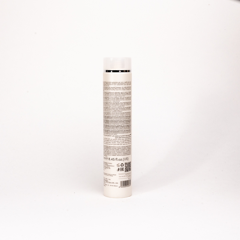 Шампунь проти лупи миттєвої дії (pH 5.5) — інтенсивний шампунь проти лупи для шкіри голови та волосся. Оздоровлює та захищає протягом усього дня. Глибоко очищає, миттєво та повністю усуває лупу, запобігає її повторному утворенню. Усуває свербіж та регулює вироблення шкірного сала. Залишає приємне відчуття свіжості на шкірі голови, а волосся стає м’яким на дотик. Рекомендується в разі будь-якого типу лупи. Ідеально підходить для щоденного використання. Для професійного та домашнього догляду.