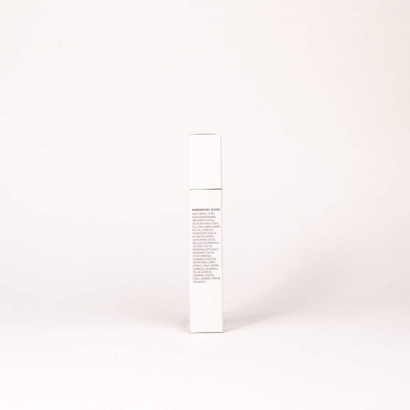 aqua (water), citrus aurantium bergamia (bergamot) leaf oil, salvia officinalis (sage) oil, citrus limon (lemon) peel oil, cupressus sempervirens leaf oil, helianthus annuus (sunflower) seed oil, melaleuca alternifolia (tea tree) leaf oil, rosmarinus officinalis (rosemary) leaf oil, litsea cubeba oil, chamomilla recutita (matricaria) flower extract, linalyl acetate, climbazole, bisabolol, peg-40 castor oil, limonene, linalool, citral, geraniol, parfum (fragrance).