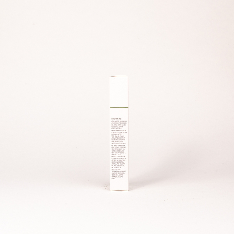 aqua (water), citrus aurantium bergamia (bergamot) leaf oil, citrus limon (lemon) peel oil, eucalyptus globulus leaf oil, helianthus annuus (sunflower) seed oil, chamomilla recutita (matricaria) oil, linalyl acetate, tocopheryl acetate, retinyl palmitate, copper pca, magnesium pca, manganese pca, zinc pca, tocopherol, imidazolidinyl urea, peg-40 castor oil, ethoxydiglycol, methyl nicotinate, linalool, geraniol, limonene, citral, parfum (fragrance).