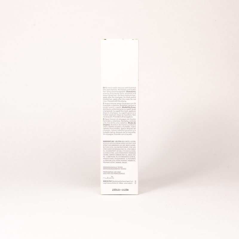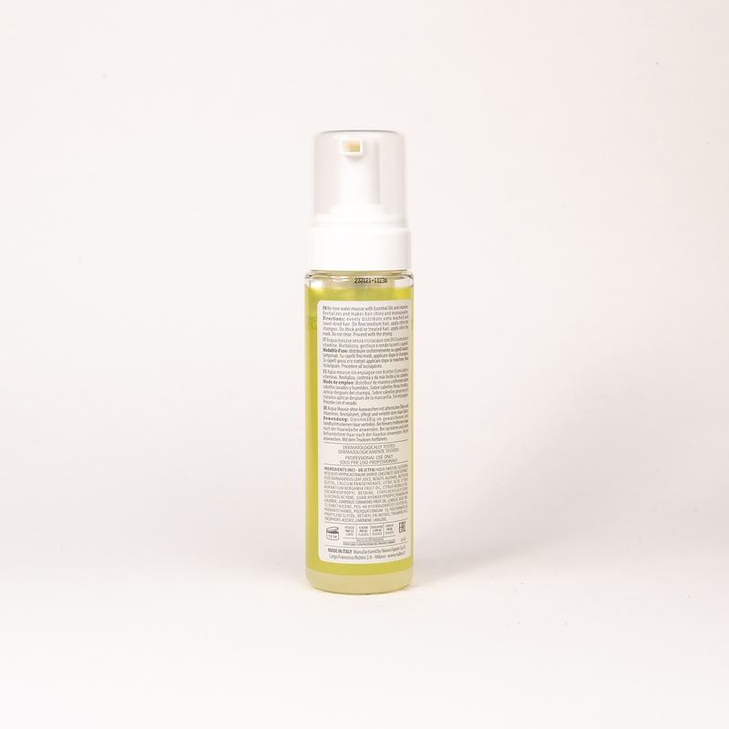 Легкий незмивний мус для відновлення волосся з есенціальними оліями бергамота, мандарина, ялівця, екстрактом кінського каштана та алое вера. Робить волосся зволоженим, блискучим і слухняним. • Має легку консистенцію та приємну текстуру, не обтяжує • Відновлює структуру, зволожує та ревіталізує волосся • Усуває пухнастість, робить волосся слухняним • Надає волоссю шовковистості та надзвичайного блиску • Підходить для всіх типів волосся
