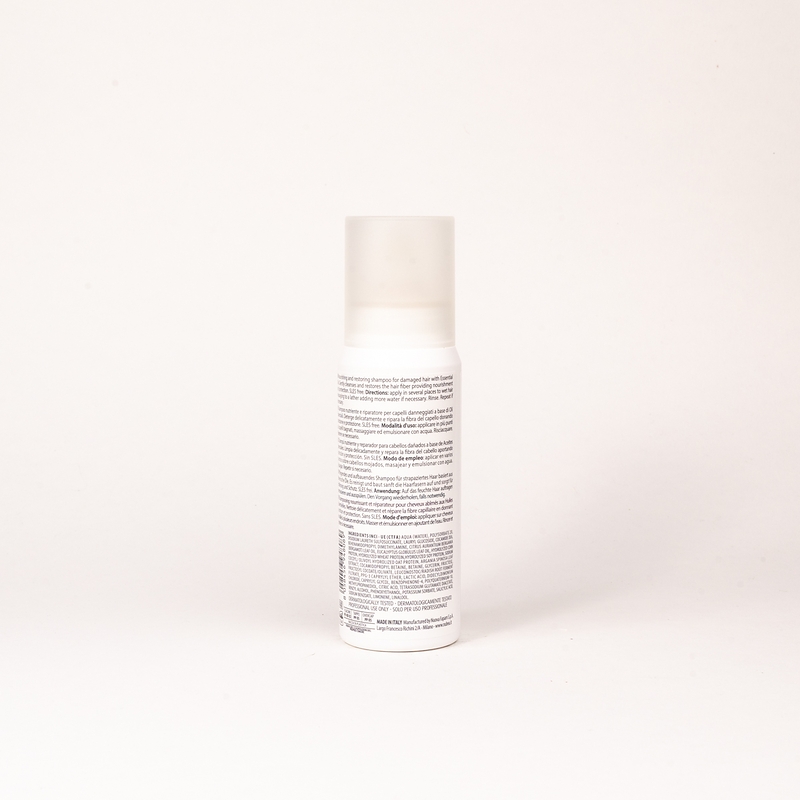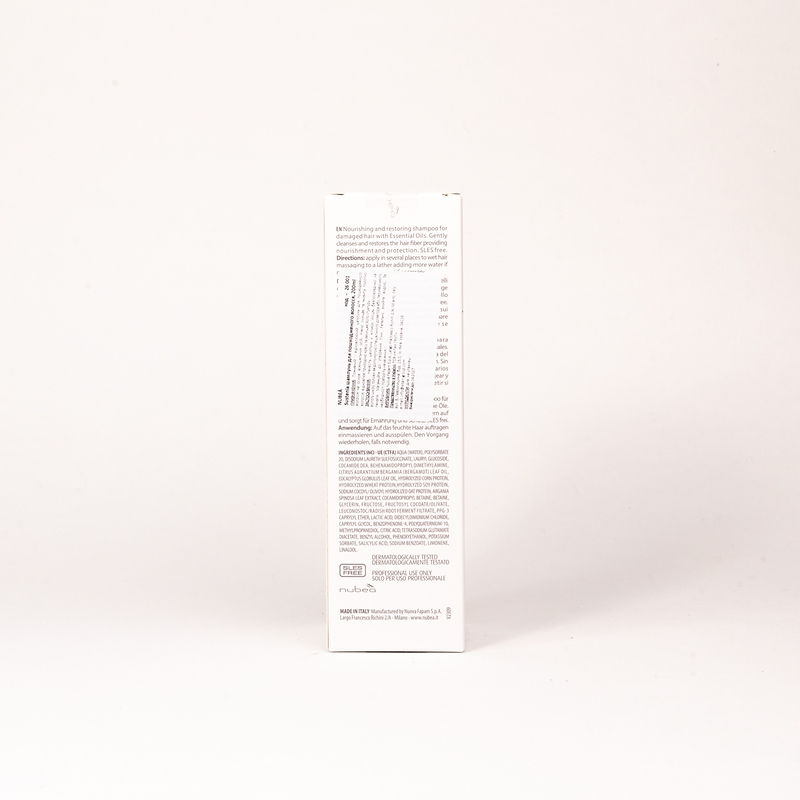 Поживний і відновлюючий шампунь для пошкодженого волосся на основі есенціальних олій бергамота й еквкаліпта з гідролізованими протеїнами кукурудзи, сої, пшениці, екстрактом арганії, екстрактом ферментації кореня редьки, молочною кислотою й бетаїном. Ніжно очищає, зволожує та живить шкіру голови та волосся по всій його довжині. • Відновлює і захищає структуру волосся • Робить волосся наповненим, щільним та еластичним